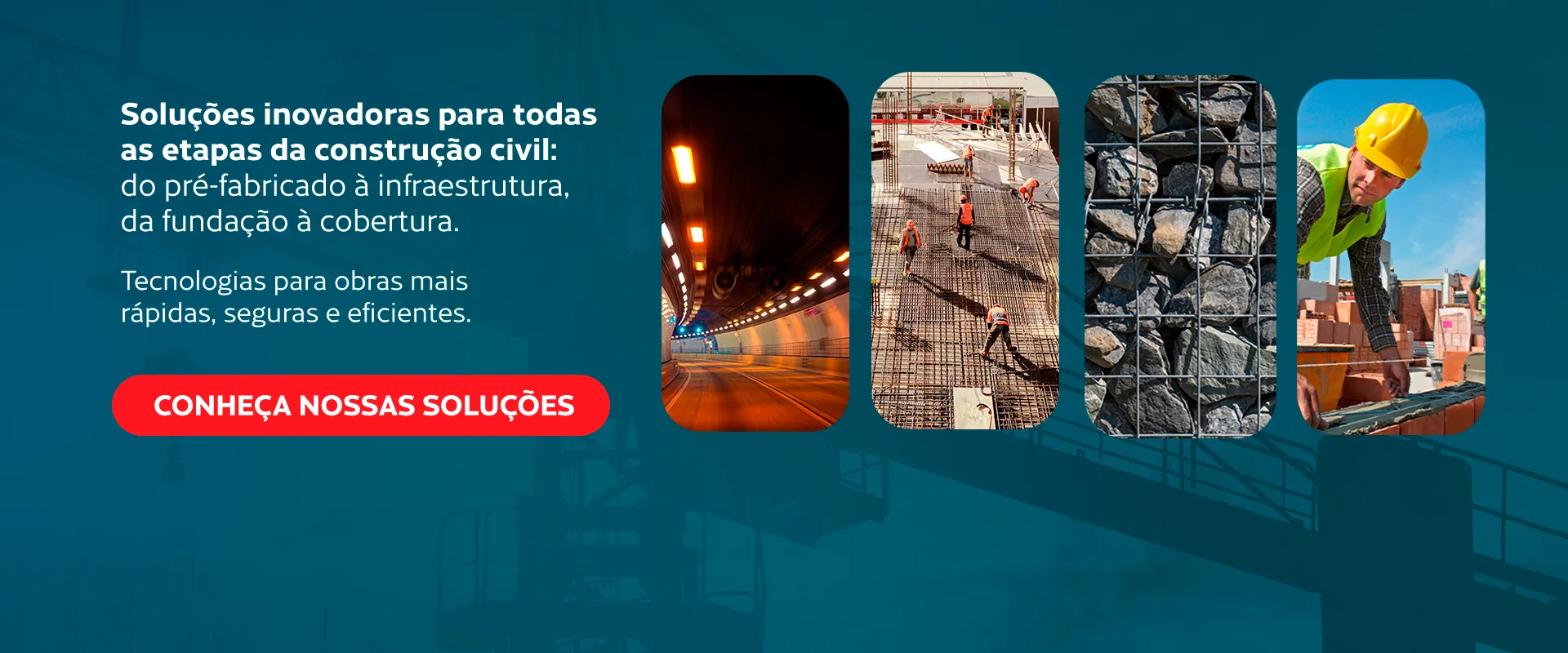 Obras de arte (pontes, viadutos), pavimentos rígidos e contenções; revestimento interno de túneis; pavimentos, contenções e controle de processos erosivos.